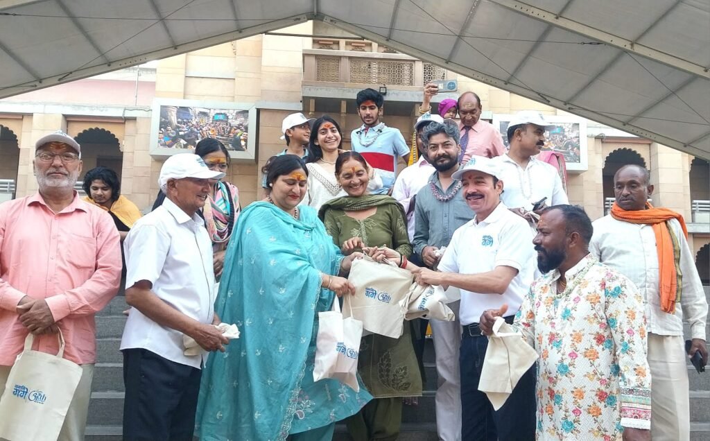 श्री काशी विश्वनाथ धाम में सोमवार को भक्तिभाव के बीच पर्यावरण संरक्षण की अलख जगी। काशी और गंगा को पॉलिथीन मुक्त बनाने की कड़ी में नमामि गंगे ने बाबा दरबार में आए भक्तों में कपड़े के थैले बांटे। उन्हें पॉलीथिन का त्याग करने के लिए प्रेरित किया। जल शक्ति मंत्रालय राष्ट्रीय स्वच्छ गंगा मिशन द्वारा आहूत गंगा स्वच्छता पखवाड़ा के तहत नमामि गंगे काशी क्षेत्र के संयोजक व नगर निगम के स्वच्छता ब्रांड एम्बेसडर राजेश शुक्ला ने श्रद्धालुओं के साथ लोगों को जागरूक किया। विश्वनाथ धाम प्रांगण में पॉलीथिन का उपयोग कर रहे श्रद्धालुओं को कपड़े के झोले का वितरण किया गया। लोगों को पॉलीथिन से होने वाले नुकसान के बारे में बताया । गंगा सेवक राजेश शुक्ला ने कहा कि पॉलीथिन के प्रयोग से पर्यावरण का नुकसान तो होता ही है, यह कैंसर का कारण भी है । काशी और गंगा को पॉलीथिन मुक्त बनाने के लिए सभी लोग कपड़े का थैला लेकर घर से निकलें। आयोजन में प्रमुख रूप से नमामि गंगे काशी क्षेत्र के संयोजक व नगर निगम के स्वच्छता ब्रांड एंबेसडर राजेश शुक्ला, हरि कृष्ण शर्मा, राजीव शर्मा, विजय यादव, आलोक शुक्ला, साक्षी शर्मा, कबीर शर्मा, नियति शर्मा, संदीप भोसले, धैर्य शर्मा एवं श्रद्धालु शामिल रहे।