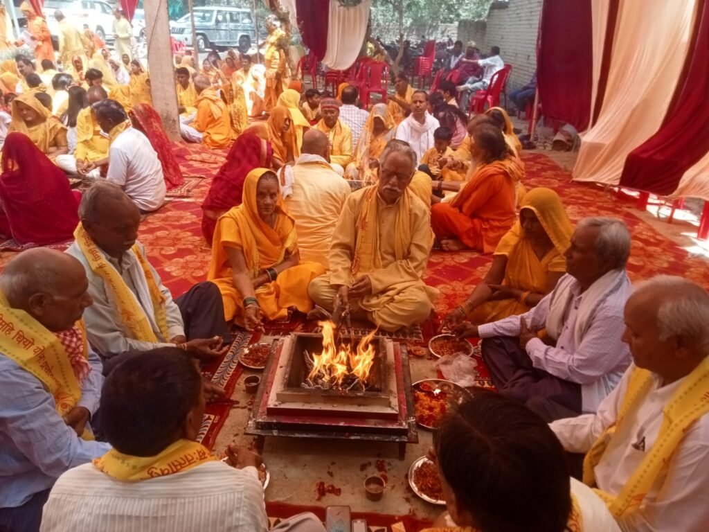 कछवा।विश्व शांति एवं लोक कल्याण व उज्जवल भविष्य के लिए गायत्री प्रज्ञा मंडल जमुआ बाजार कछवा मिर्जापुर के तत्वाधान में आही स्थित नेताजी सुभाष चंद्र बोस स्मृति समिति के प्रांगण रविवार को आयोजक कमला प्रसाद शर्मा कवि जी के देखरेख में एकदिवसीय 11 कुंडीय गायत्री महायज्ञ का आयोजन किया गया। कार्यक्रम का शुभारंभ आयोजक कमला प्रसाद शर्मा तथा उनकी पत्नी गंगाजली देवी ने मां गायत्री के चित्र पर पुष्प अर्चित व कलश पूजन कर किया। इस गायत्री महायज्ञ में क्षेत्र से आए हुए लगभग 300 श्रद्धालुओं ने बढ़ चढ़कर भाग लिया। यज्ञ का संचालन डॉक्टर बृजेश द्विवेदी ने किया। आयोजक कमला प्रसाद शर्मा ने बताया कि गायत्री प्रज्ञा मंडल द्वारा 2026 में 108 कुंडीय गायत्री महायज्ञ करने हेतु जो संकल्प लिया गया है उसके तहत यह 56 वां गायत्री महायज्ञ है। कार्यक्रम के अंत में विशाल भंडारा का आयोजन किया गया जिसमें यज्ञ में आए हुए श्रद्धालुओं व क्षेत्र वासियों ने प्रसाद के रूप में भोजन ग्रहण किया। कार्यक्रम के दौरान मुख्य रूप से रामनारायण मास्टर ,ब्रह्मा देव यादव,खेलाड़ी सिंह, राधेश्याम सिंह, नागेंद्र नारायण द्विवेदी, गीता रस्तोगी,सावित्री सिंह, शकुंतला ,द्विज राज द्विवेदी, संजय सिंह ,इंद्रेश सिंह इत्यादि लोग शामिल रहे।